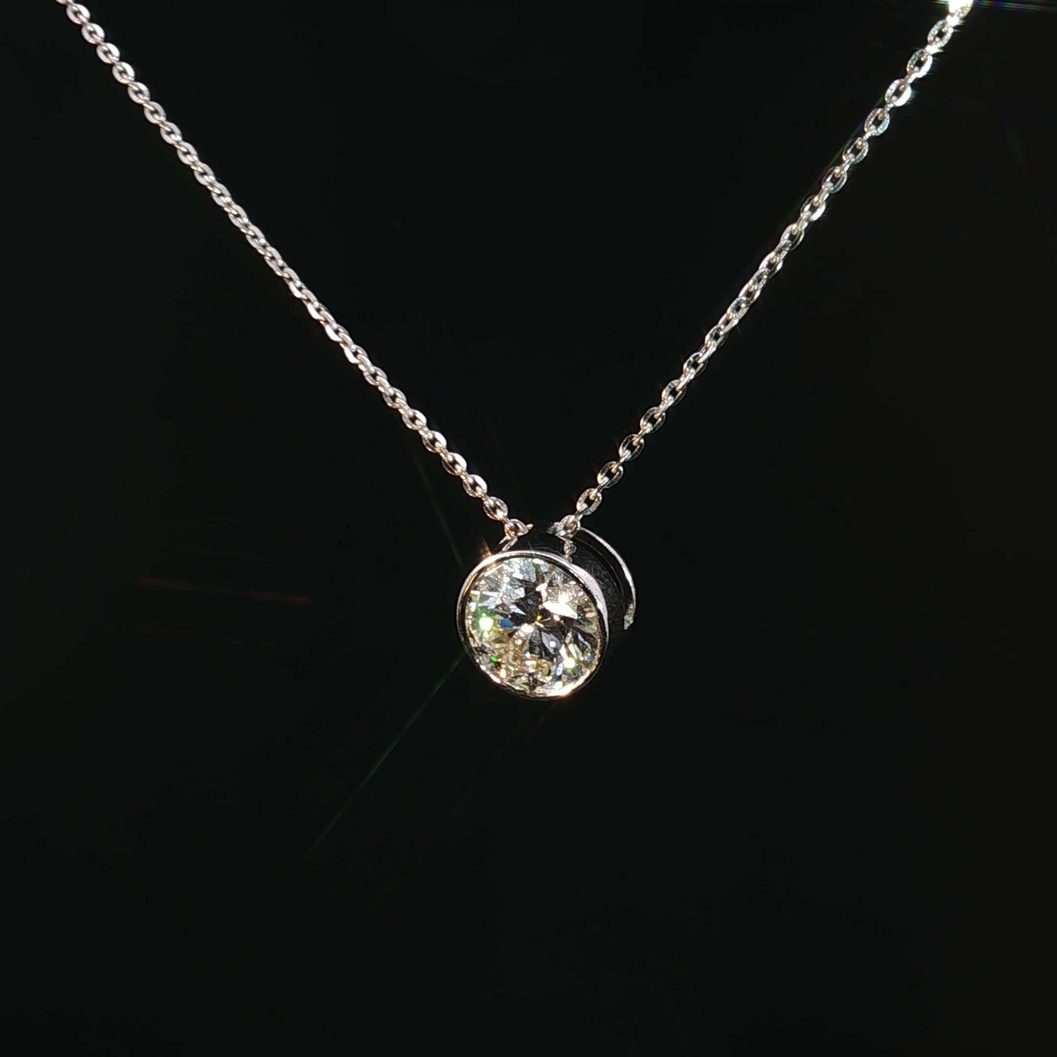 Expertly crafted in solid 14K white gold, the necklace offers a sleek and modern look while maintaining classic elegance. With a gold weight of 3.37 grams, it is lightweight and comfortable for everyday wear. The centerpiece 2.21 carat round diamond adds a bold yet graceful statement, making this necklace perfect for both daily styling and special occasions.