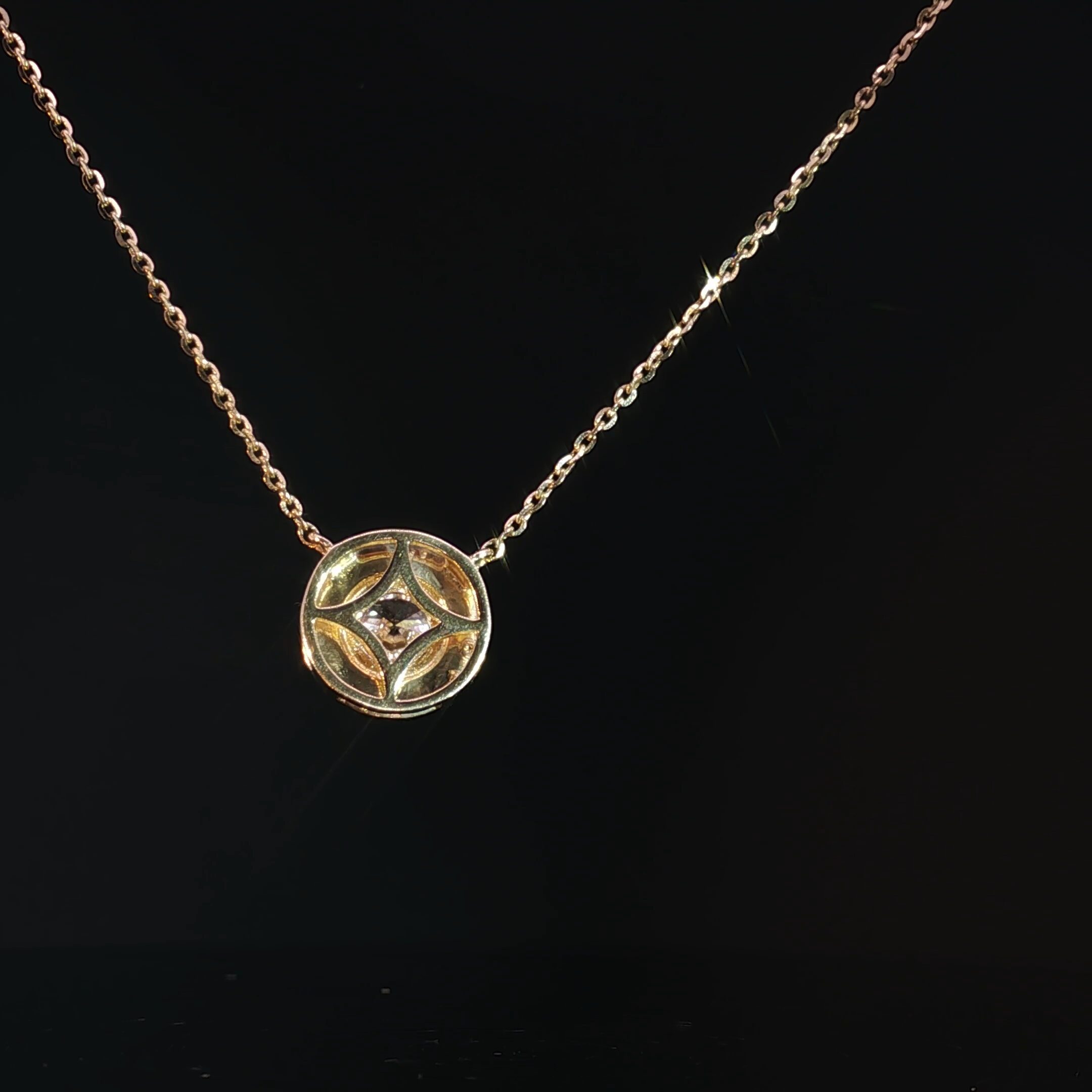 Suspended from a delicate yellow gold chain, this necklace sits gracefully on the neckline and can be worn alone for an elegant look or layered with other pieces for added style.