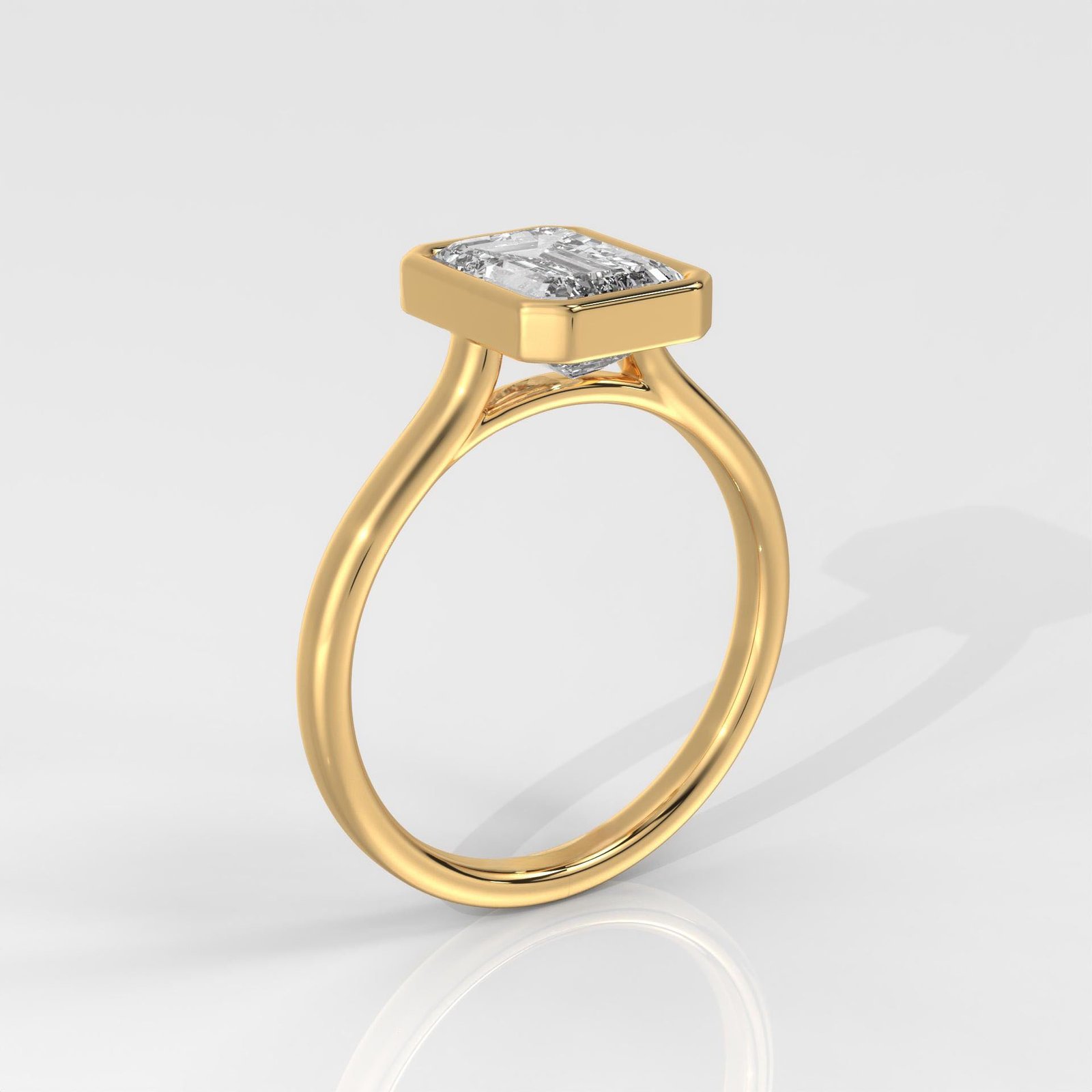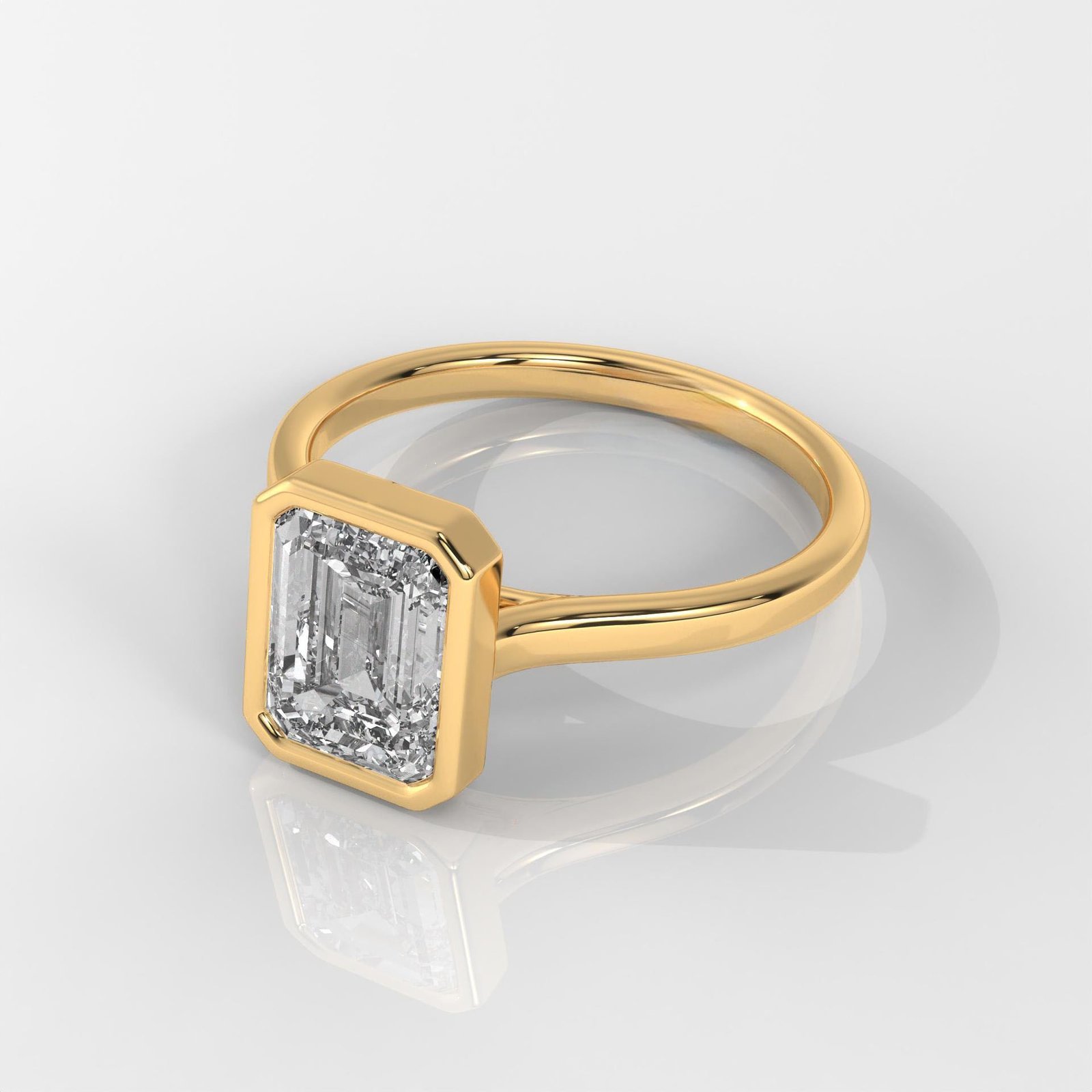 Elevate your jewelry collection with our Emerald-Cut Bezel Set Diamond Ring in 14K Gold, a timeless piece that blends sophistication with a contemporary edge. The striking emerald-cut IGI-certified lab-grown diamond is framed in a smooth bezel setting, offering a clean and secure design while highlighting the diamond?s natural brilliance.