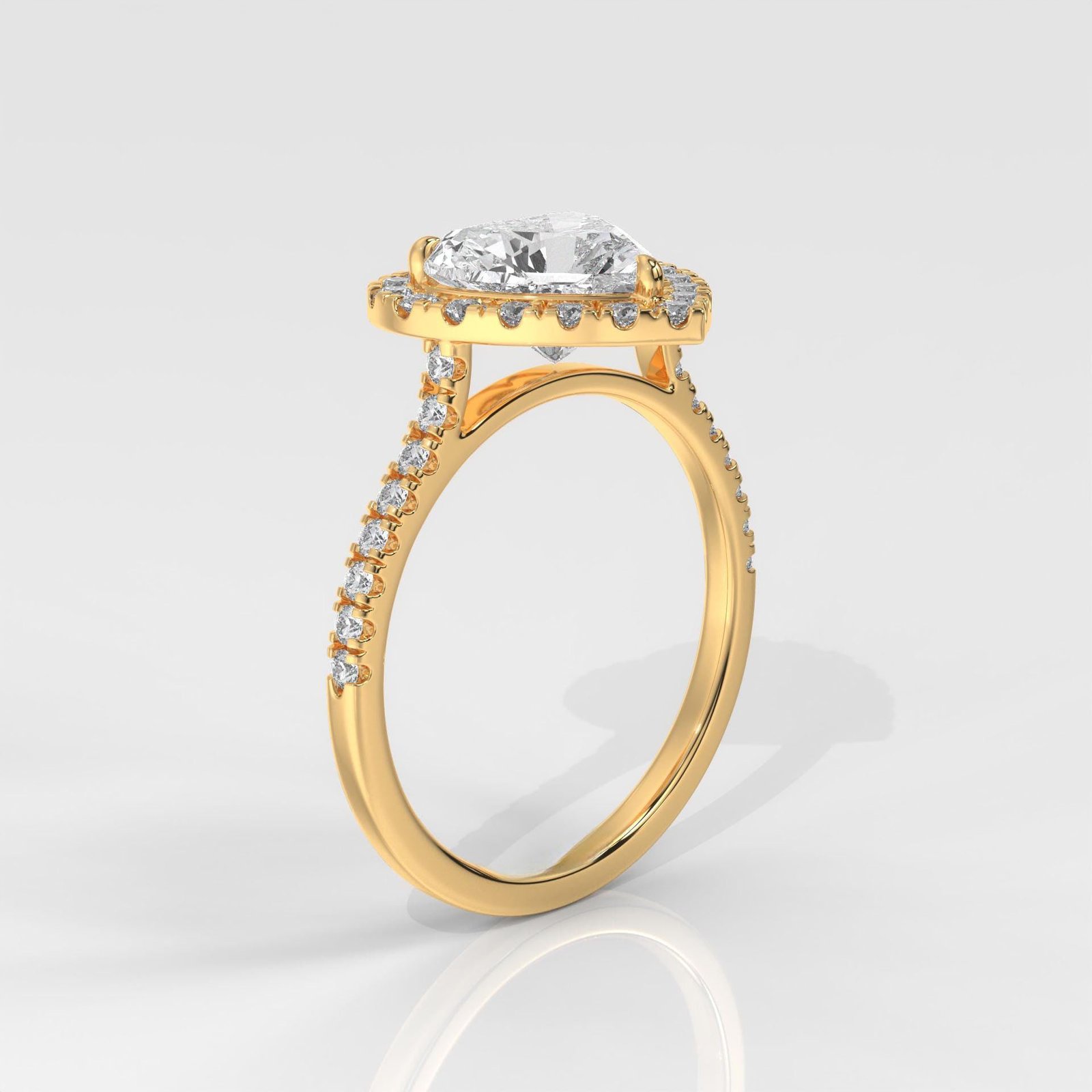 The heart-cut diamond is the ultimate symbol of love, making this ring a perfect choice for proposals and anniversaries. The halo setting enhances the size and brilliance of the center diamond, while the pav? band adds endless sparkle for a truly breathtaking look. Crafted with eco-friendly lab-grown diamonds, this ring delivers unmatched elegance and sustainability.