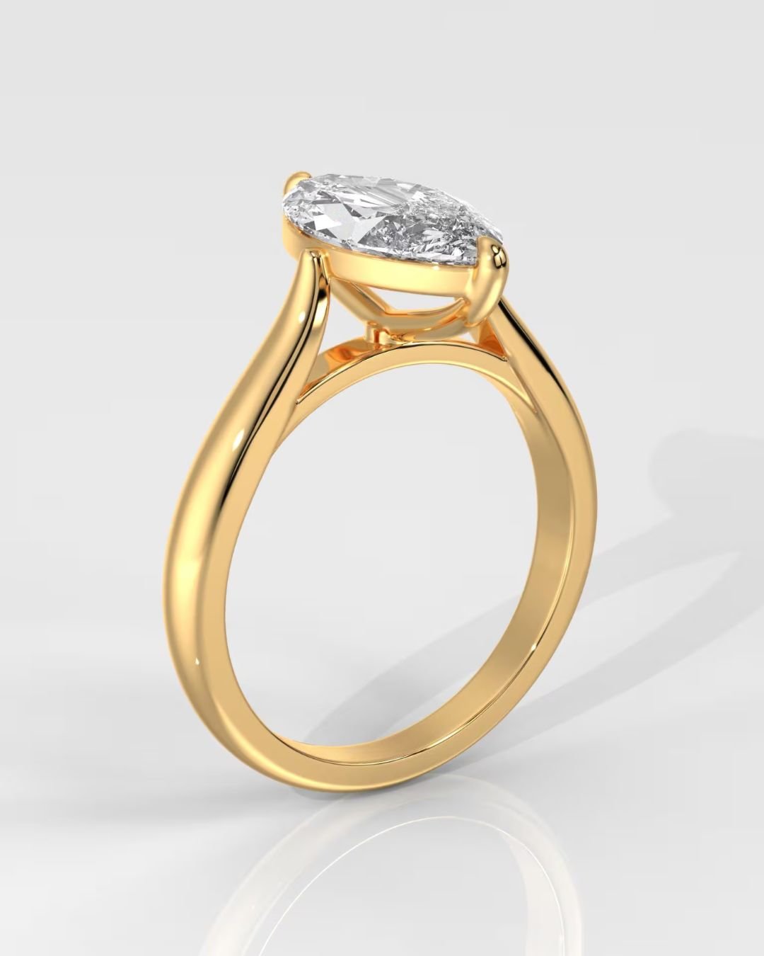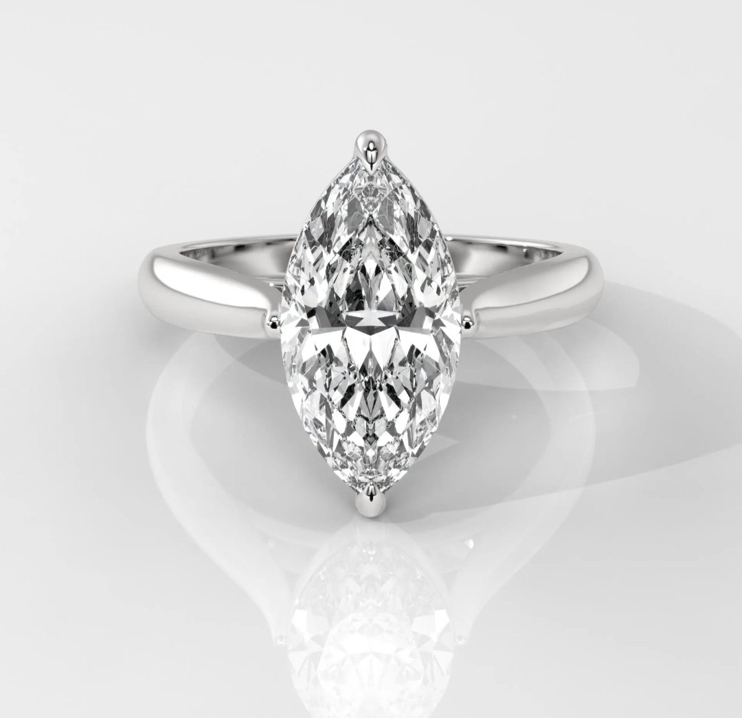Celebrate timeless elegance with this 14K gold solitaire engagement ring, featuring a stunning 1ct Marquise Cut lab-grown diamond. Set on a sleek, polished band, this minimalist design highlights the diamond’s elongated brilliance perfect for those who love refined sophistication with a modern twist.