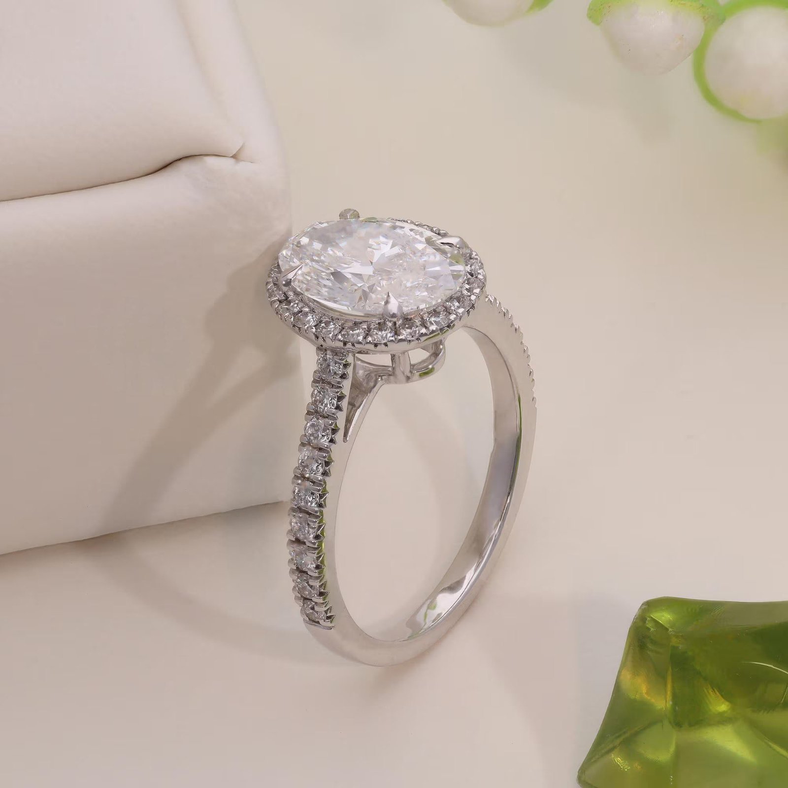 The oval cut diamond symbolizes individuality and elegance, while the halo setting enhances its brilliance. The pav? band signifies an eternal bond, with each diamond representing cherished moments together. Crafted with ethically sourced lab-grown diamonds, this ring beautifully combines luxury with sustainability.