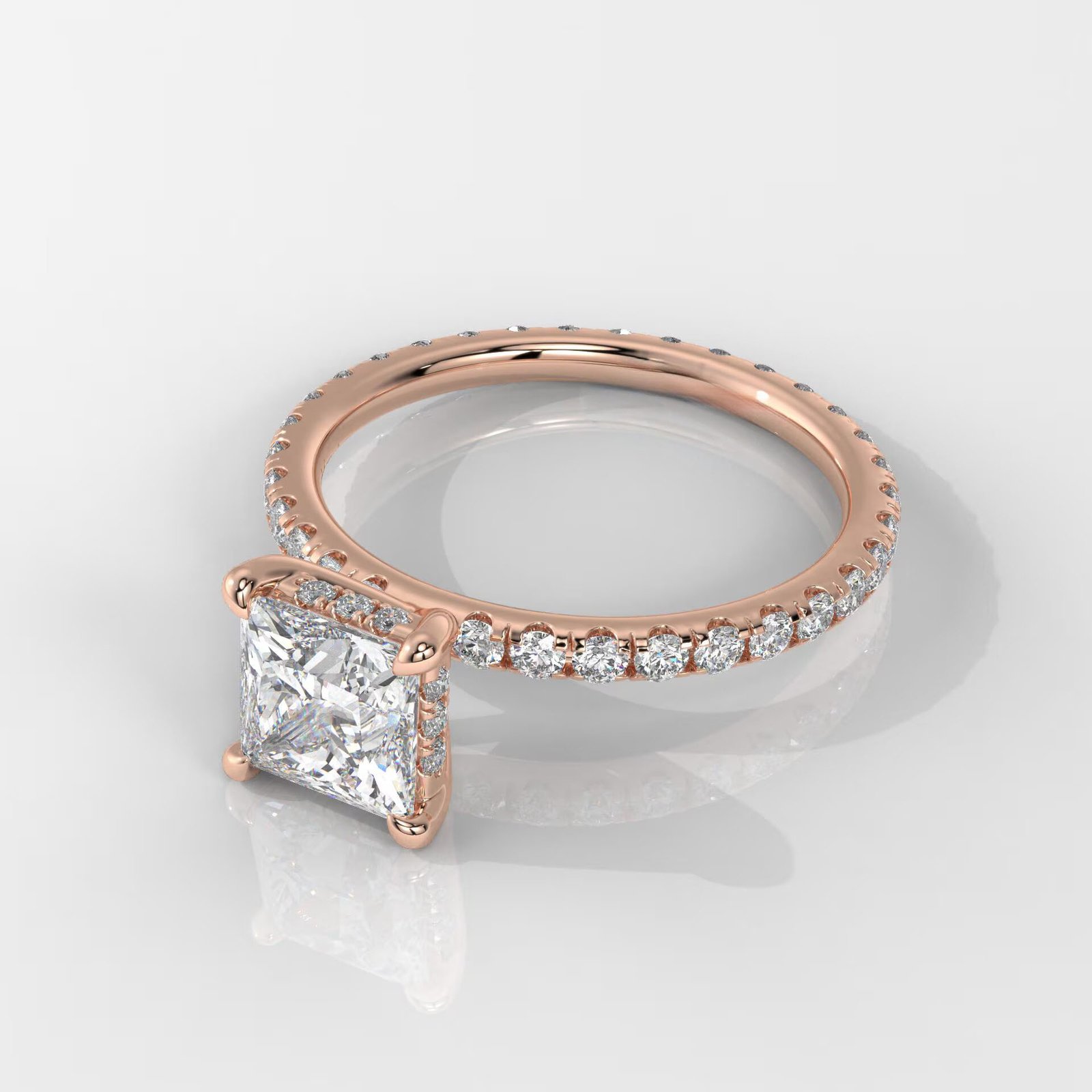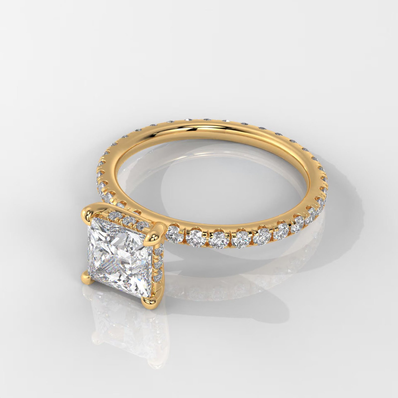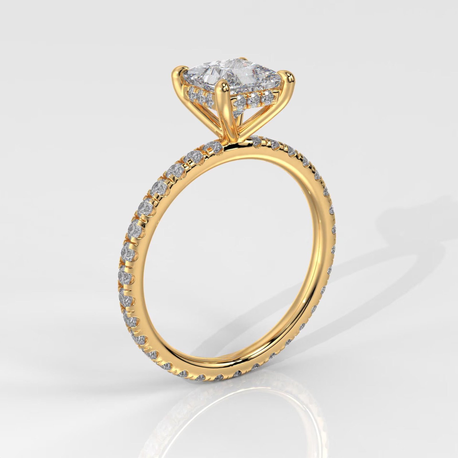 Elegant 14K Gold Princess Cut Lab Grown Diamond Ring with a hidden halo design. IGI Certified, DEF color, VVS–VS clarity. A modern, sparkling engagement ring made to order.
