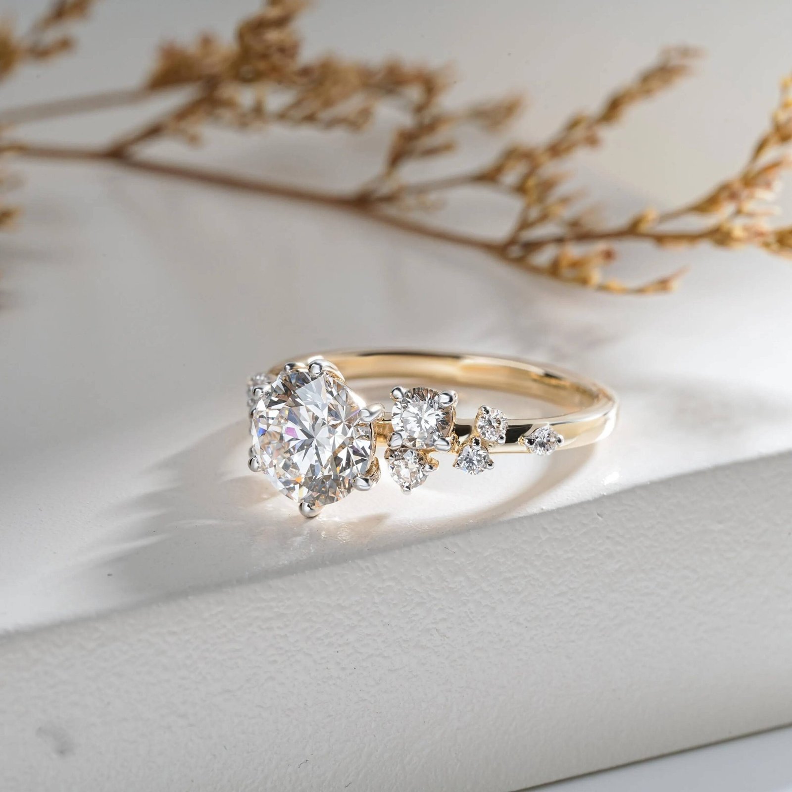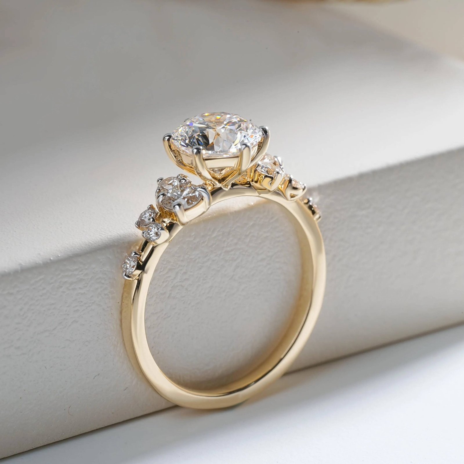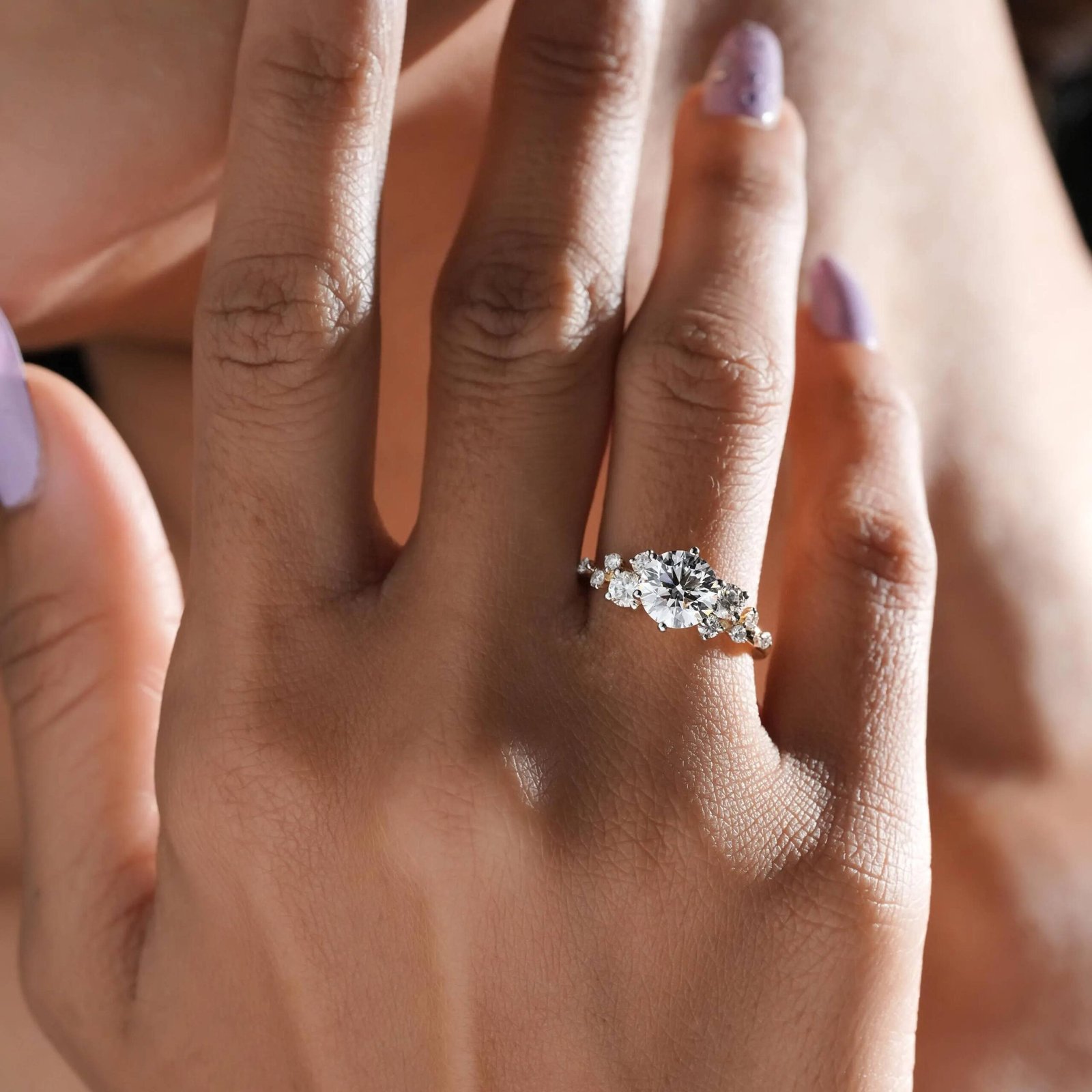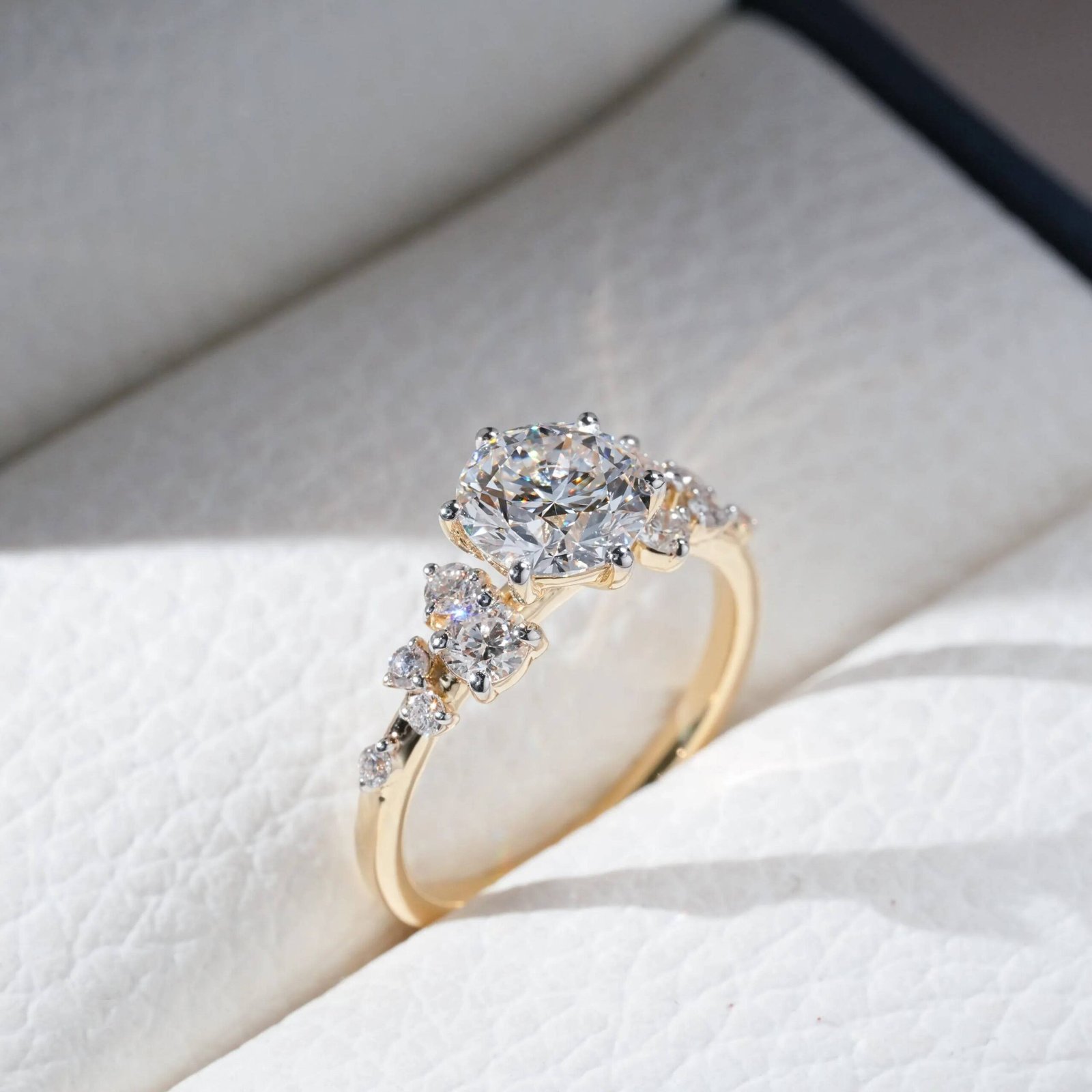 Celebrate your love with a piece that’s as timeless and brilliant as your story. This exquisite 14K gold engagement ringshowcases a Round Brilliant IGI-certified lab-grown diamond center stone, complemented by sparkling side stones all crafted to the highest standards of clarity and color.