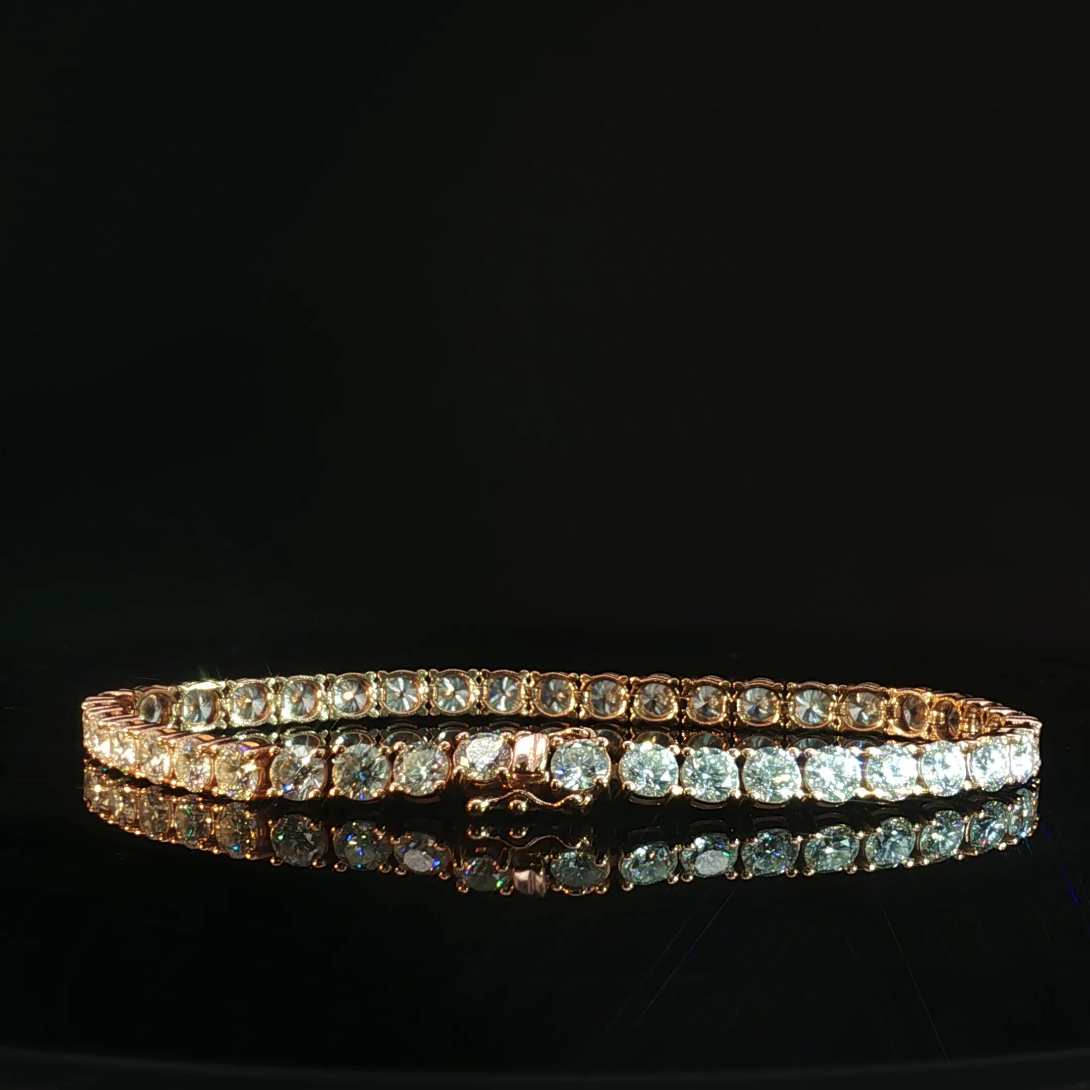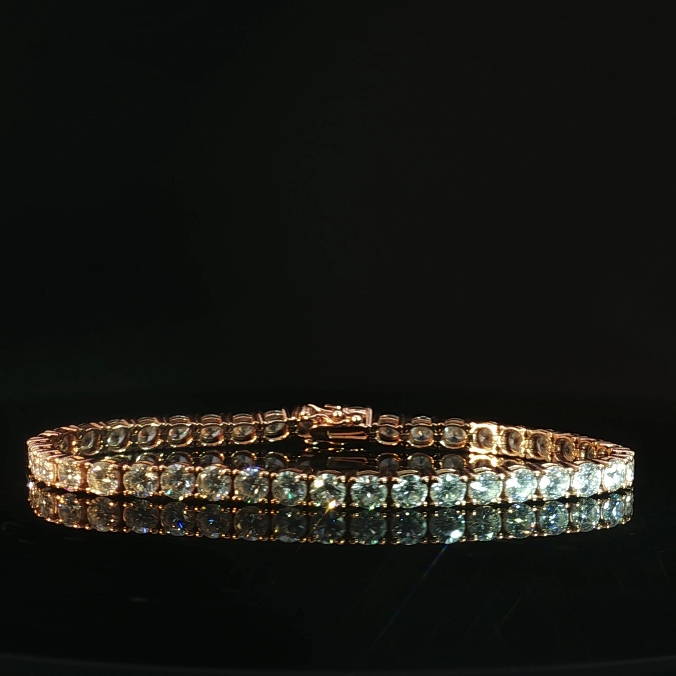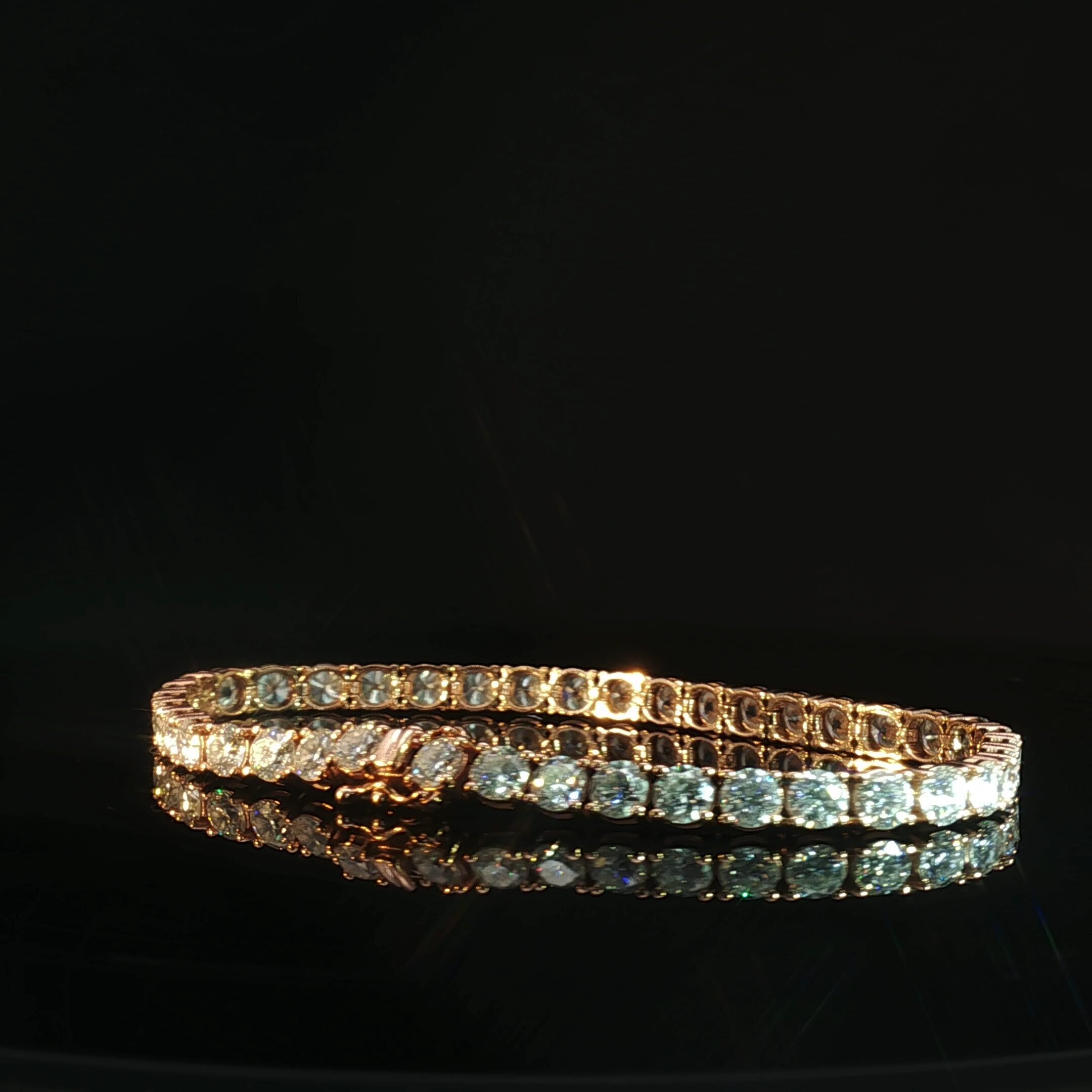 Expertly crafted in solid 14K rose gold, this bracelet offers both durability and luxury with a gold weight of 10.98 grams. The impressive total diamond weight of 12.30 carats makes this piece a true statement of elegance while maintaining the classic and refined appeal of a traditional tennis bracelet.