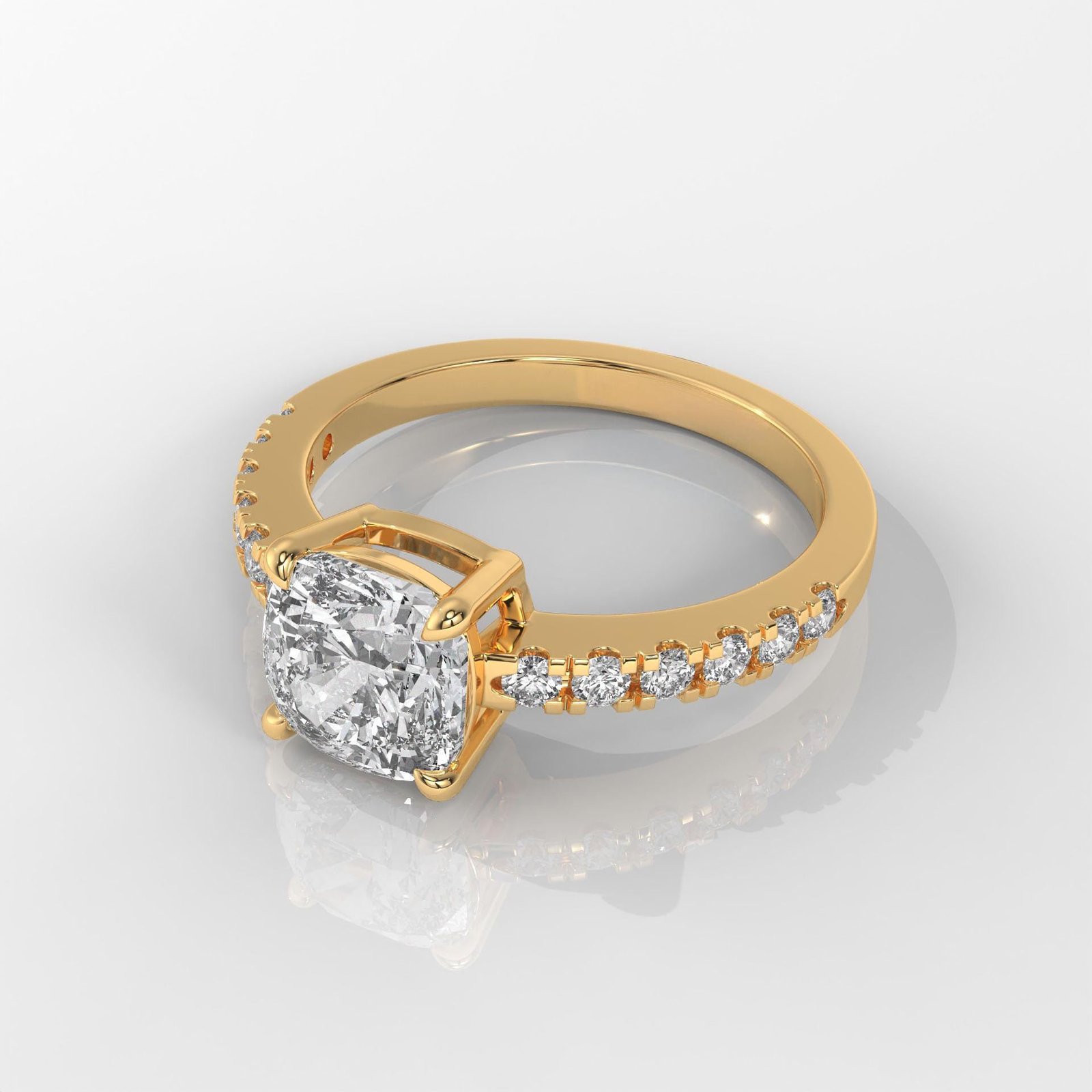 Celebrate everlasting beauty with our 14K Gold Cushion-Cut Diamond Engagement Ring, designed for those who appreciate elegance and sophistication. The centerpiece is a radiant cushion-cut IGI-certified lab-grown diamond, known for its brilliant fire and soft edges. A delicate pave-set band adds extra sparkle, enhancing the charm of this timeless design.