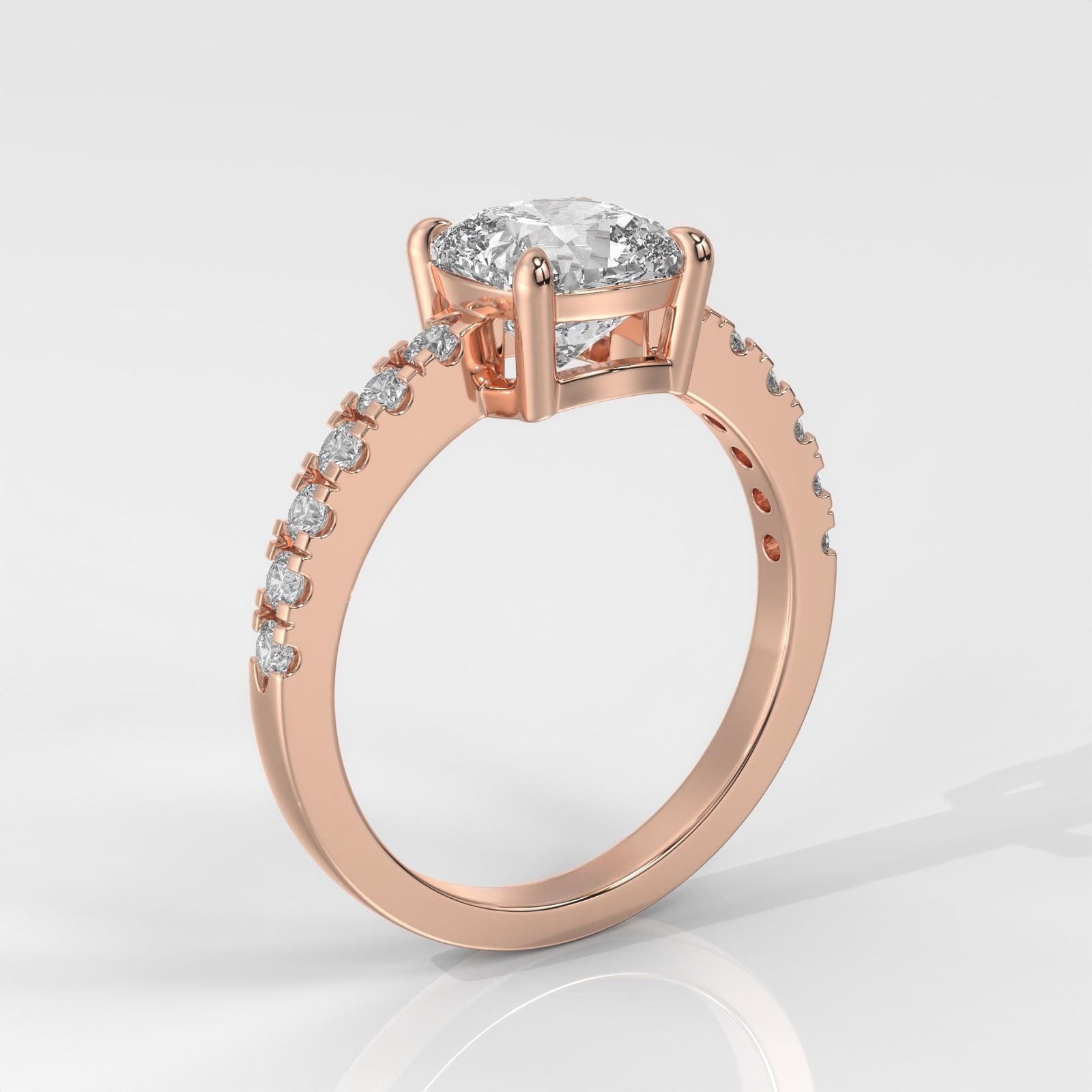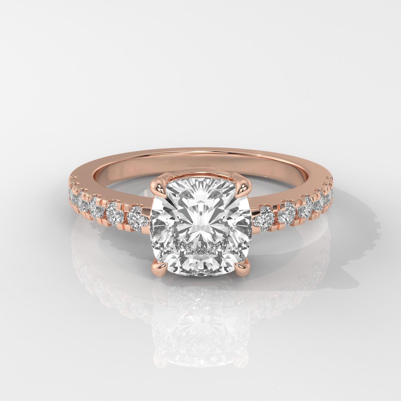 The cushion-cut diamond is beloved for its romantic, pillow-like shape that combines brilliance with vintage charm. Paired with the classic pave band, this ring exudes elegance and sophistication, making it a meaningful choice for engagements, anniversaries, or milestones.