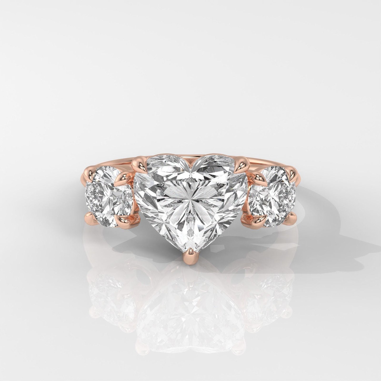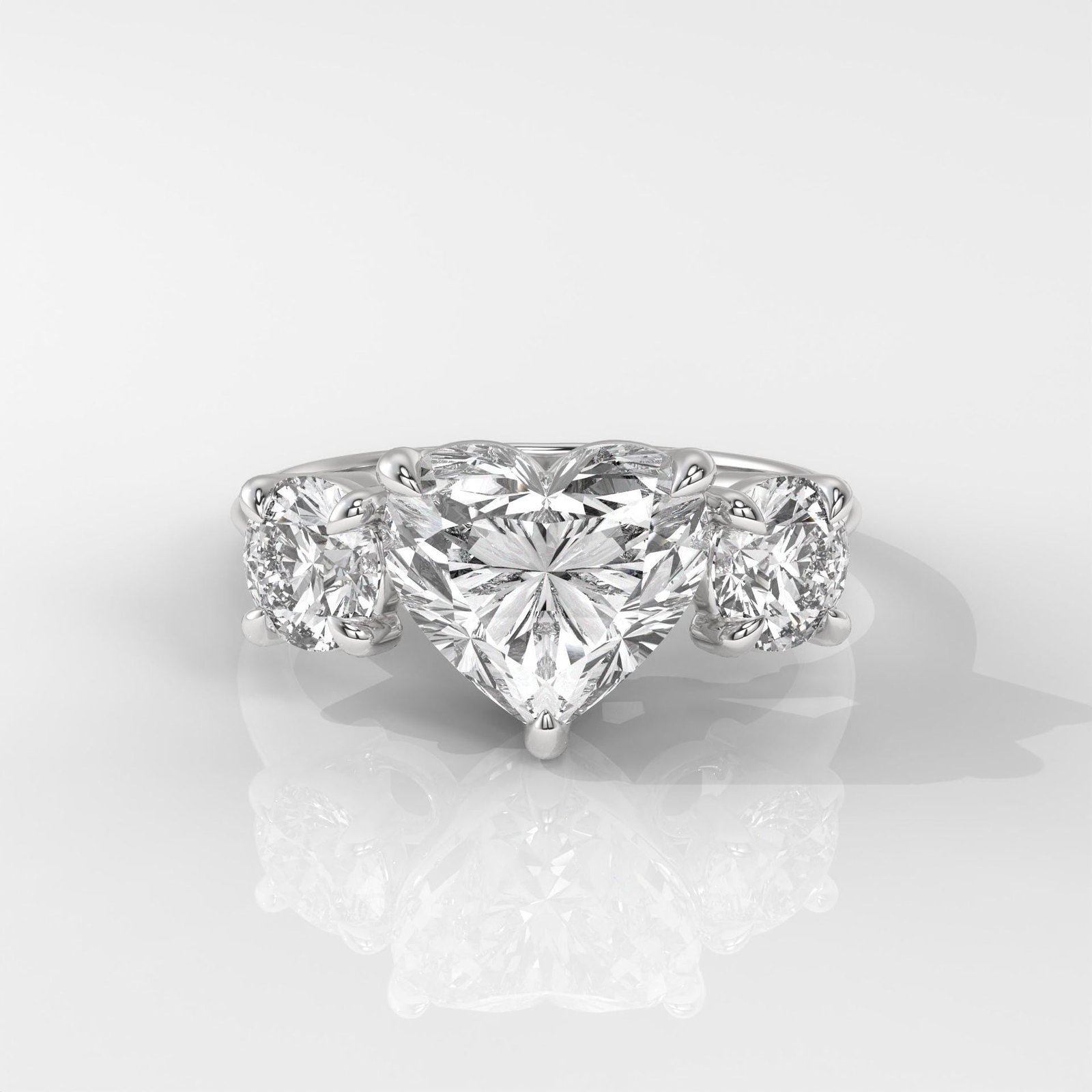 This exquisite three-stone design is more than just beautiful ? it?s deeply symbolic. The heart-shaped center diamond represents love at its core, while the two side stones reflect a shared journey through time. Meticulously crafted with lab-grown diamonds for sustainability and sparkle, this ring is a meaningful choice for engagements, anniversaries, or any moment worth celebrating.